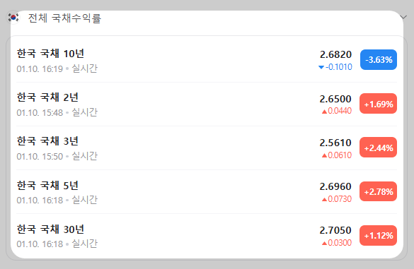 하지만 원화를 보유한 시장 참여자들은 미국 대비 리스크가 큰 국채금리에 투자해도 연간 2.6% 수준의 수익을 거둘 수 밖에 없습니다. 대한민국의 위험자산(코스피, 코스닥)에 분산투자해서 추가 수익률을 거둔다고 해도 미국시장 대비 더 좋은 성과를 거두기는 쉽지 않을 겁니다.