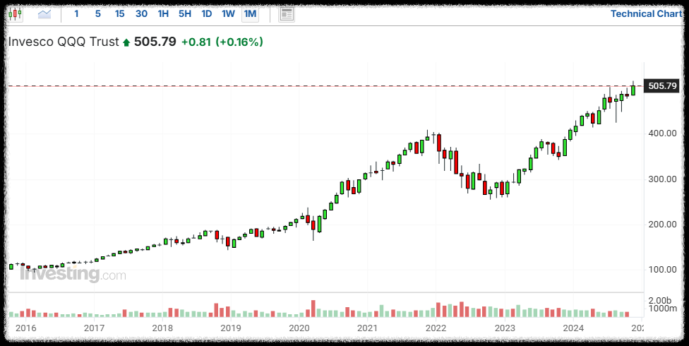 QQQM은 애플, 엔비디아, 마이크로소프트 등 세계 최고의 하이 테크놀로지 기업들이 모여있는 나스닥 지수에 투자하는 ETF입니다. 우리가 잘 알고있는 나스닥 ETF인 QQQ와 똑같이 나스닥 지수를 추종하지만 QQQM이 주 당 가격이 더 저렴하고 수수료도 저렴하기에 우리는 당연히 QQQM을 선택해야 합니다.