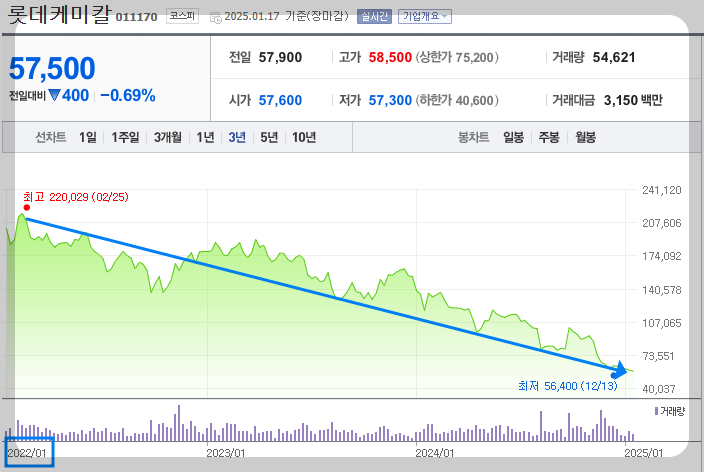 실제로 석유화학 기업들의 주가를 보면 산업의 붕괴 사이클에 맞춰 빠르게 하락했음을 알 수 있습니다. 제가 남다른 식견이나 인사이트가 있어서 여러분들께 경고해드린게 아닙니다. 해당 기업들의 주가 하락이 시작되었을 때 그 이유가 무엇인지 찾아보았고, 석유화학 기업들의 주가 하락이 반영구적인 기업펀더멘털 훼손에 기인했다고 판단했기 때문에 여러분들께 매수하면 안된다고 경고할 수 있었던 것입니다.