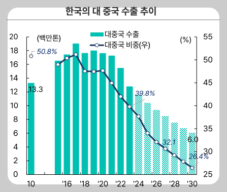 대중국 수출비중 하락 추세는 바뀔 수 있는 것이 아닙니다. 중국은 공격적인 캐파증설로 100% 화학산업 자립화에 성공했기에 수입량을 지속 감소시킬 것이고 고객을 잃어버린 대한민국의 공장은 하나 둘 멈출 수 밖에 없는것이죠.